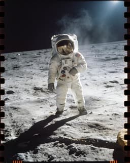 A solitary figure adrift in the infinite void of space, captured through a vintage film aesthetic.